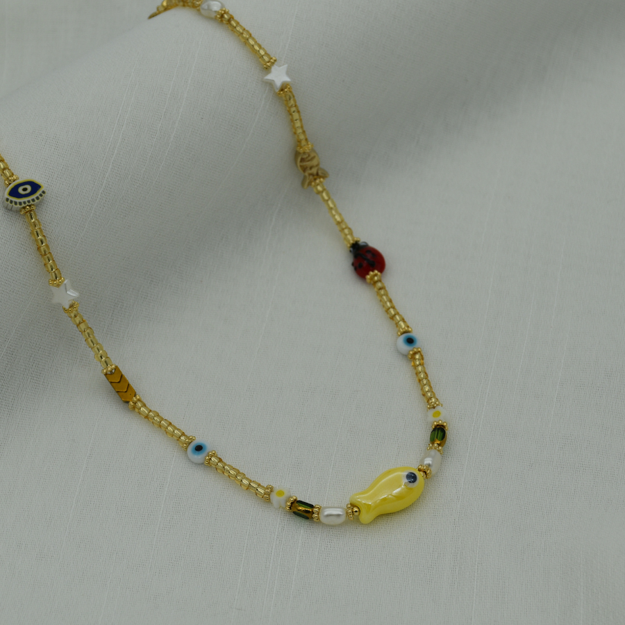 Chocker con piezas en baño de oro de 24 k, y dije de pez en porcelana