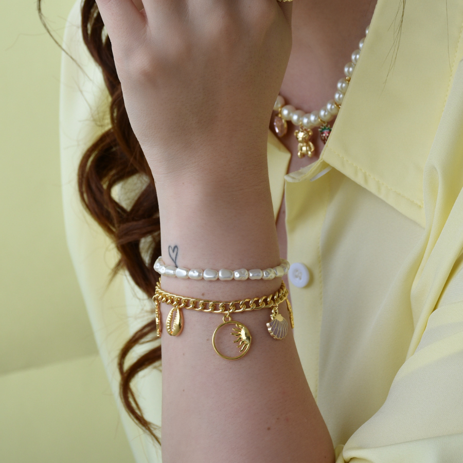 Pulsera en perlas con piezas en baño de oro de 24 k (NO INCLUYE TOPOS)