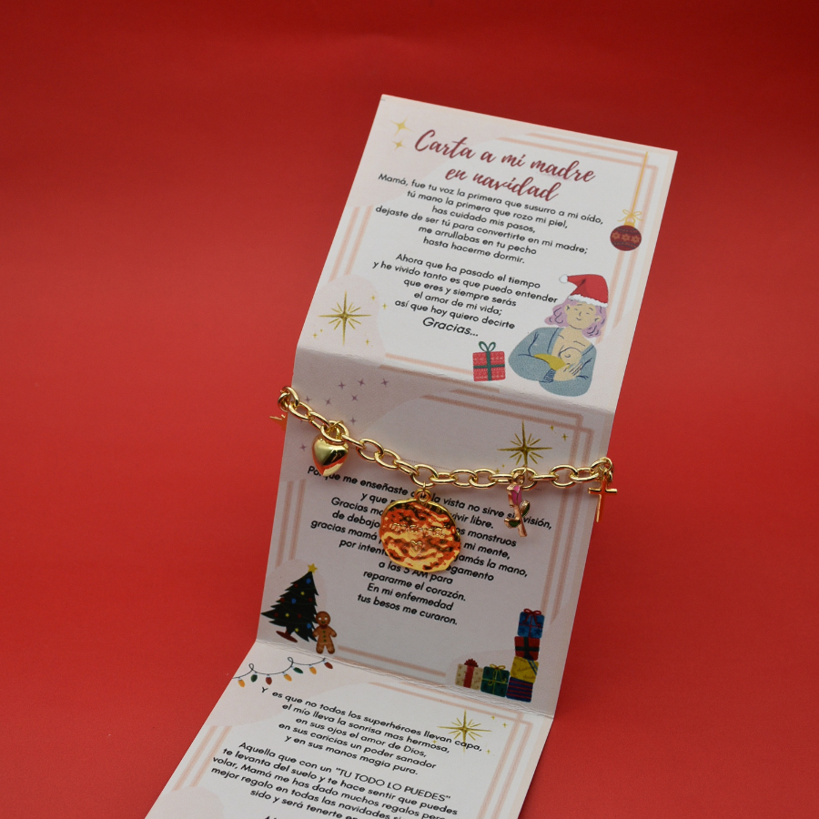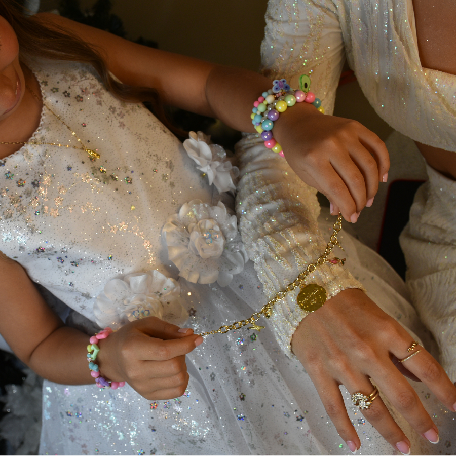 Pulsera en perla de vidrio con piezas en baño de oro de 24 k