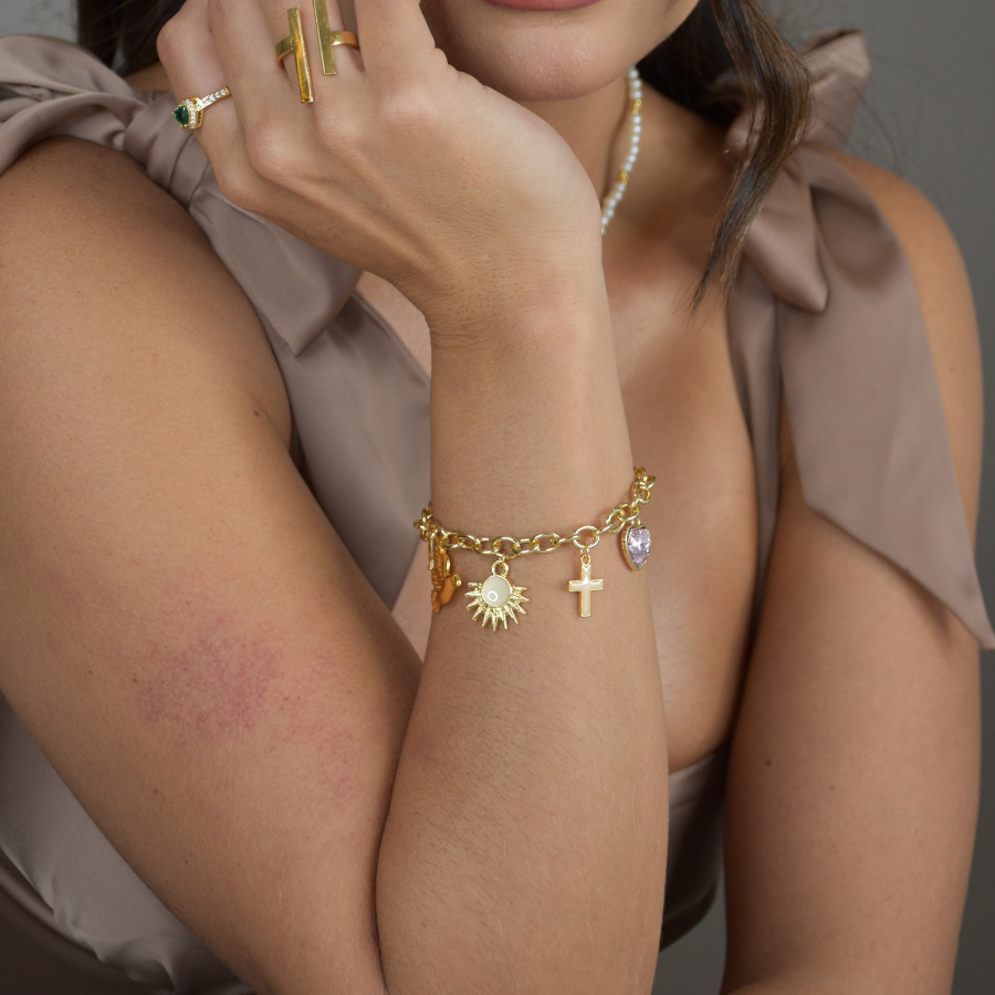 Pulsera con piezas en baño de oro de 24 k